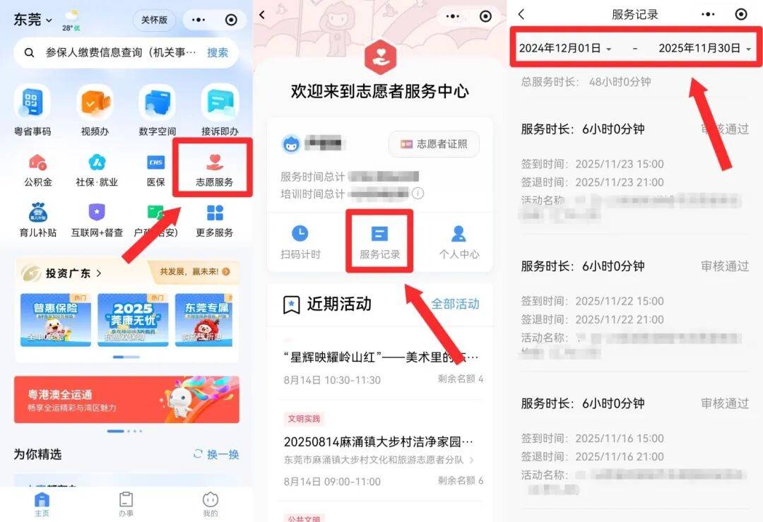搜刮“粤省事”小步伐,点击“意向供职”,查看“供职记实”,挑选筛选2024年12月1日-2025年11月30日时长。